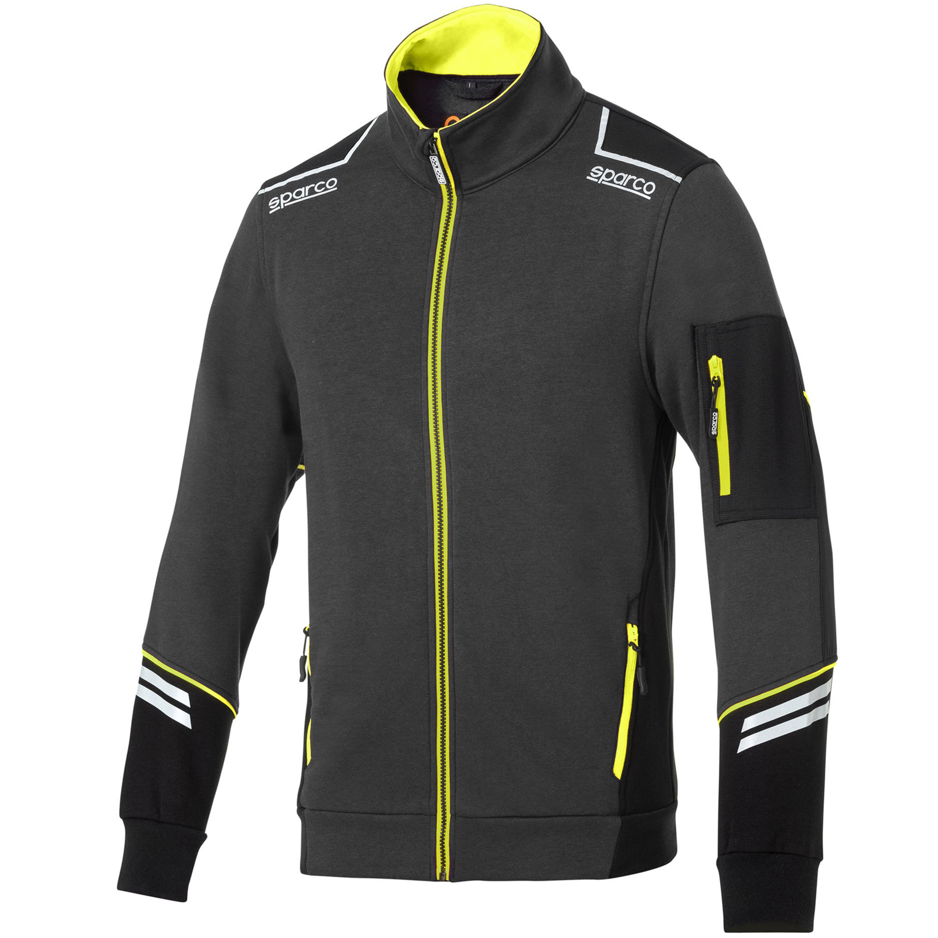 80% bawełna - 20% poliester / 280 g/m2 Odblaskowe logo Sparco, wzmocnione rękawy ze wstawkami zapobiegającymi otarciom i odblaskowe paski o dużej widoczności. Wzmocnione wstawki na ramionach, ultra rozsuwany zamek boczny na kieszeni na piersi.