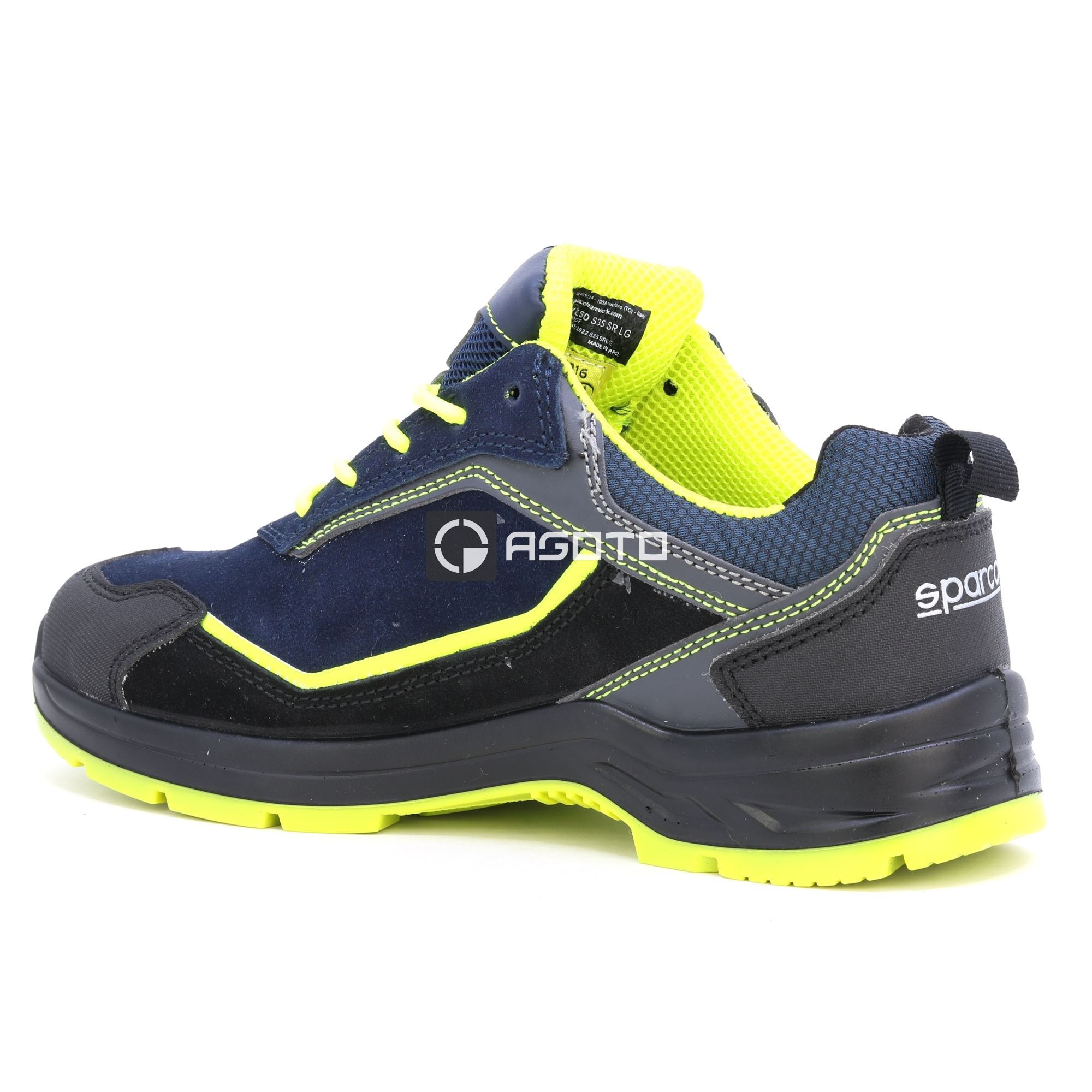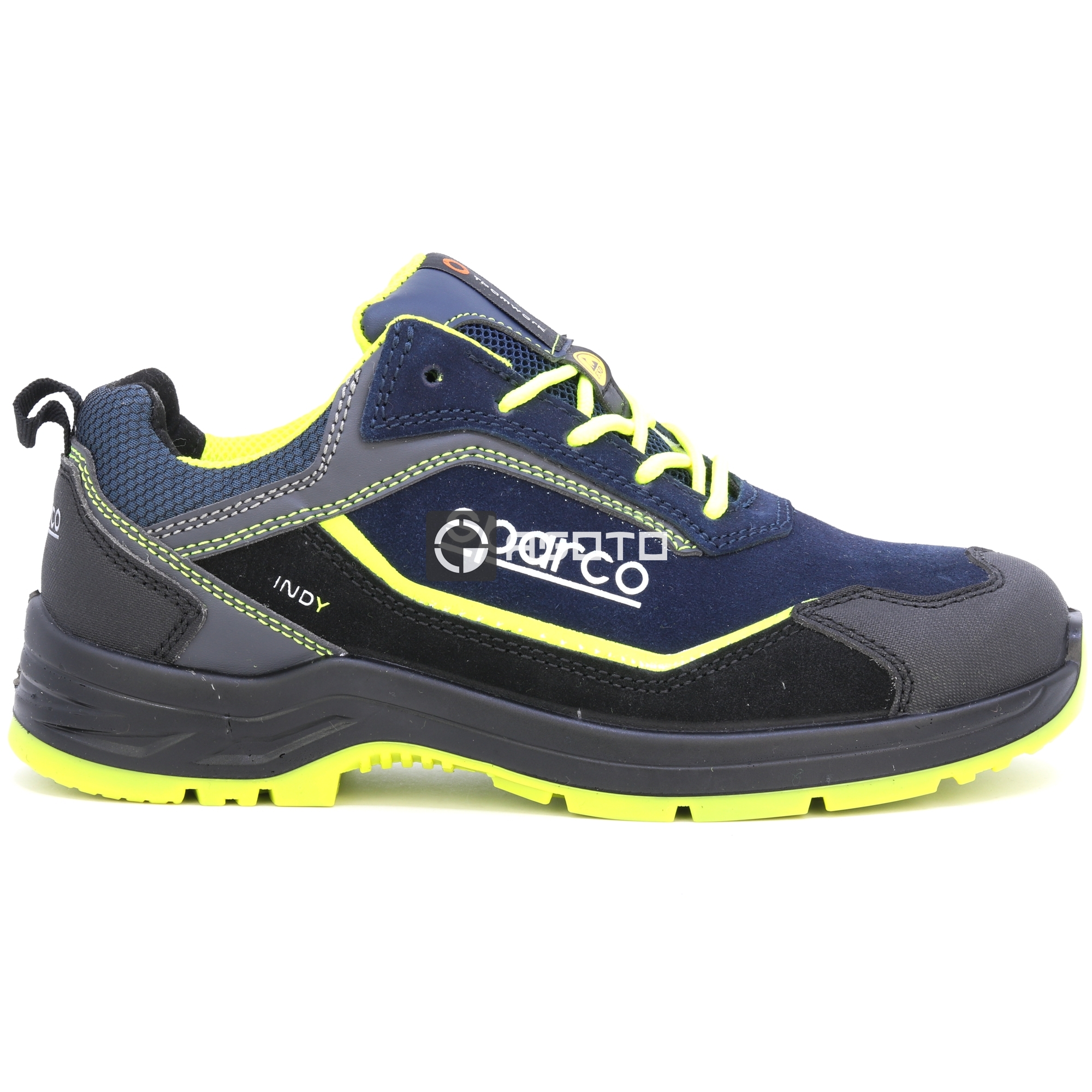 Obuwie wywodzące się z wyścigów. Półbut ochronny zgodny z nową normą ISO 20345:2022, wykonany z delikatnej, wodoodpornej skóry zamszowej, podeszwa PU o podwójnej gęstości „flexgrip+” ze specjalną piętą spełniającą wymagania dotyczące przyczepności na drabinie (lg). lekki i odpowiedni do wszystkich zastosowań.