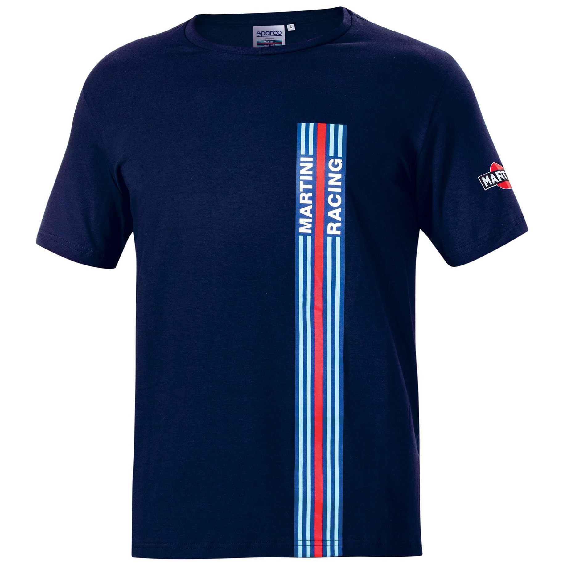 T-shirt Sparco Martini Racing z dużym paskiem jest wykonany w 95% z bawełny i w 5% z elastanu, dzięki czemu jest miękki i wygodny. Z logo wyścigowym Martini na lewym rękawie oraz logo i wyścigowymi paskami z przodu. Miękkie i wygodne w noszeniu. Kultowe logo wyścigowe Martini. Duże logo Sparco.