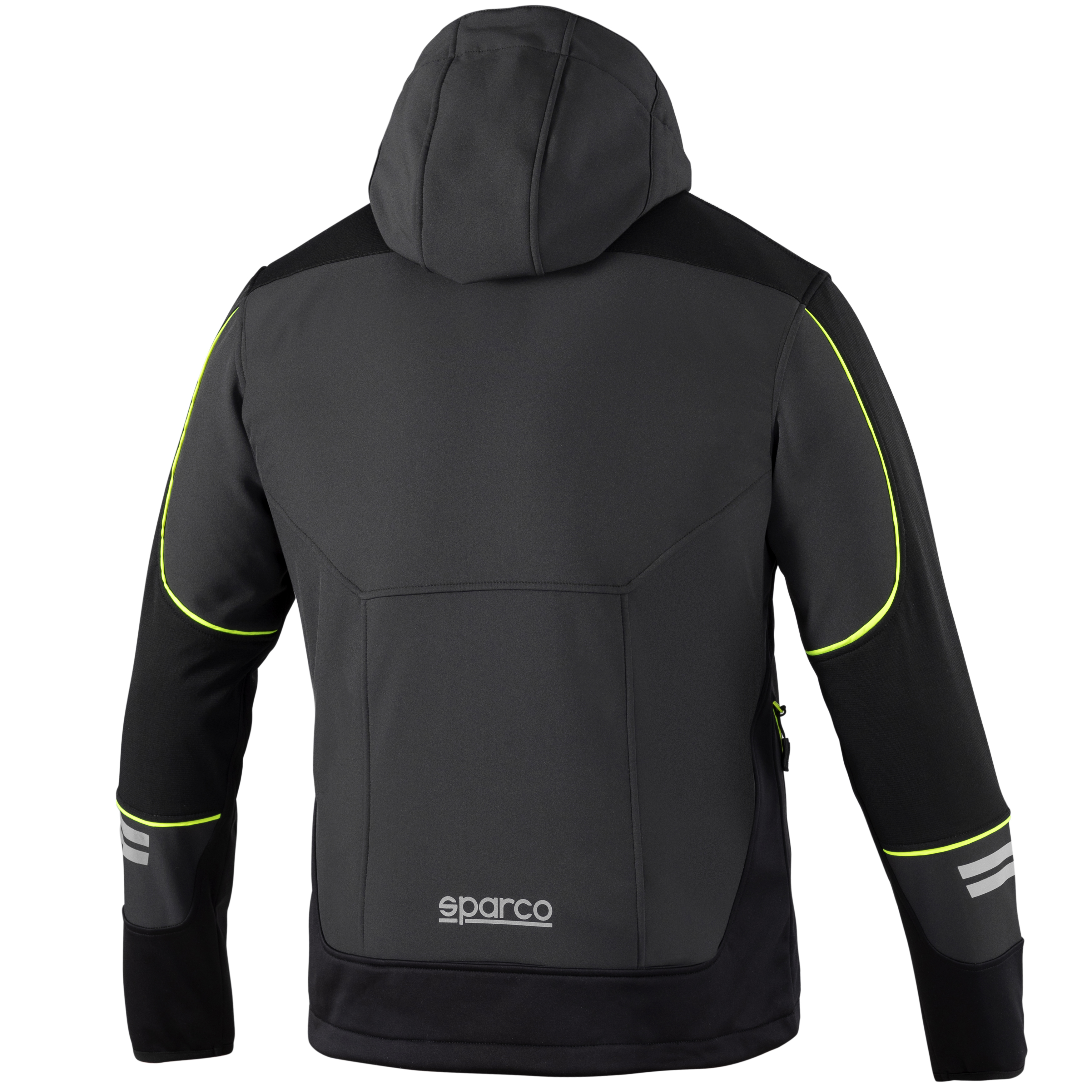Kurtka softshellowa Sparco, która jest wiatroszczelna i wodoodporna. Wyposażona jest w polarową podszewkę wewnętrzną. Materiał: 94% poliester - 6% elastan / 330 g/m2 wyściółka: 100% poliester (polar) odblaskowe logo sparco, wzmocnione naramienniki, ramiona i rękawy wykonane z materiału odpornego na przetarcia. Powlekane wodoodporne zamki błyskawiczne, boczne i piersiowe kieszenie z dobrze widocznymi zamkami błyskawicznymi, odblaskowe paski na rękawach, odpinany i składany kaptur z podwójną regulacją, super elastyczny materiał na mankietach, regulowana podszewka wewnętrzna dla maksymalnego dopasowania.