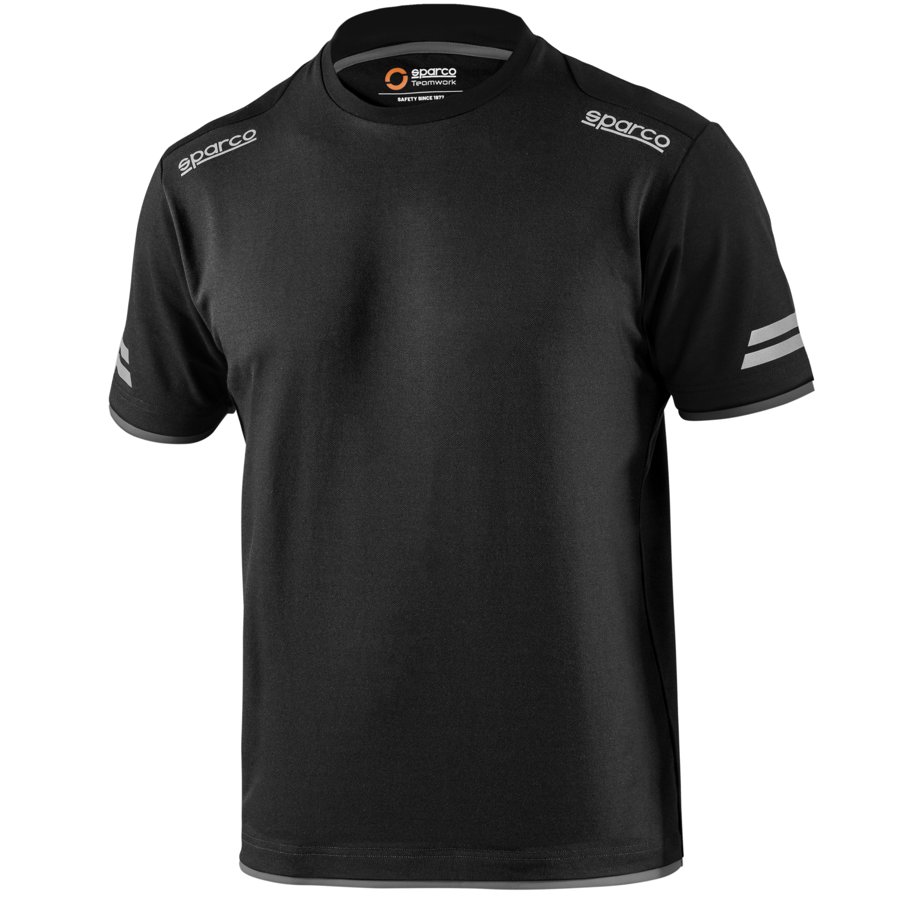 50% bawełna - 50% poliester z efektem piki / 170 g/m2 odblaskowe logo Sparco, dobrze widoczne paski na rękawach, wzmocnienia na ramionach, kontrastowe wstawki.