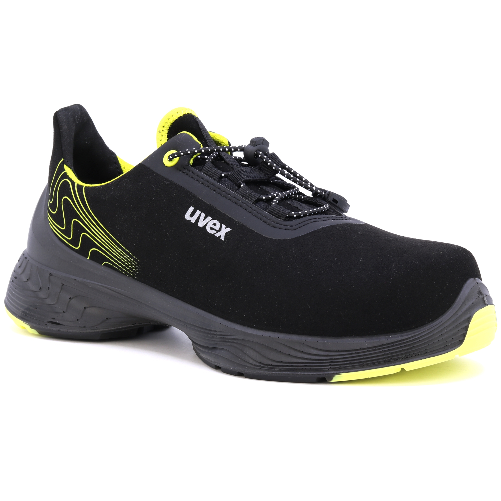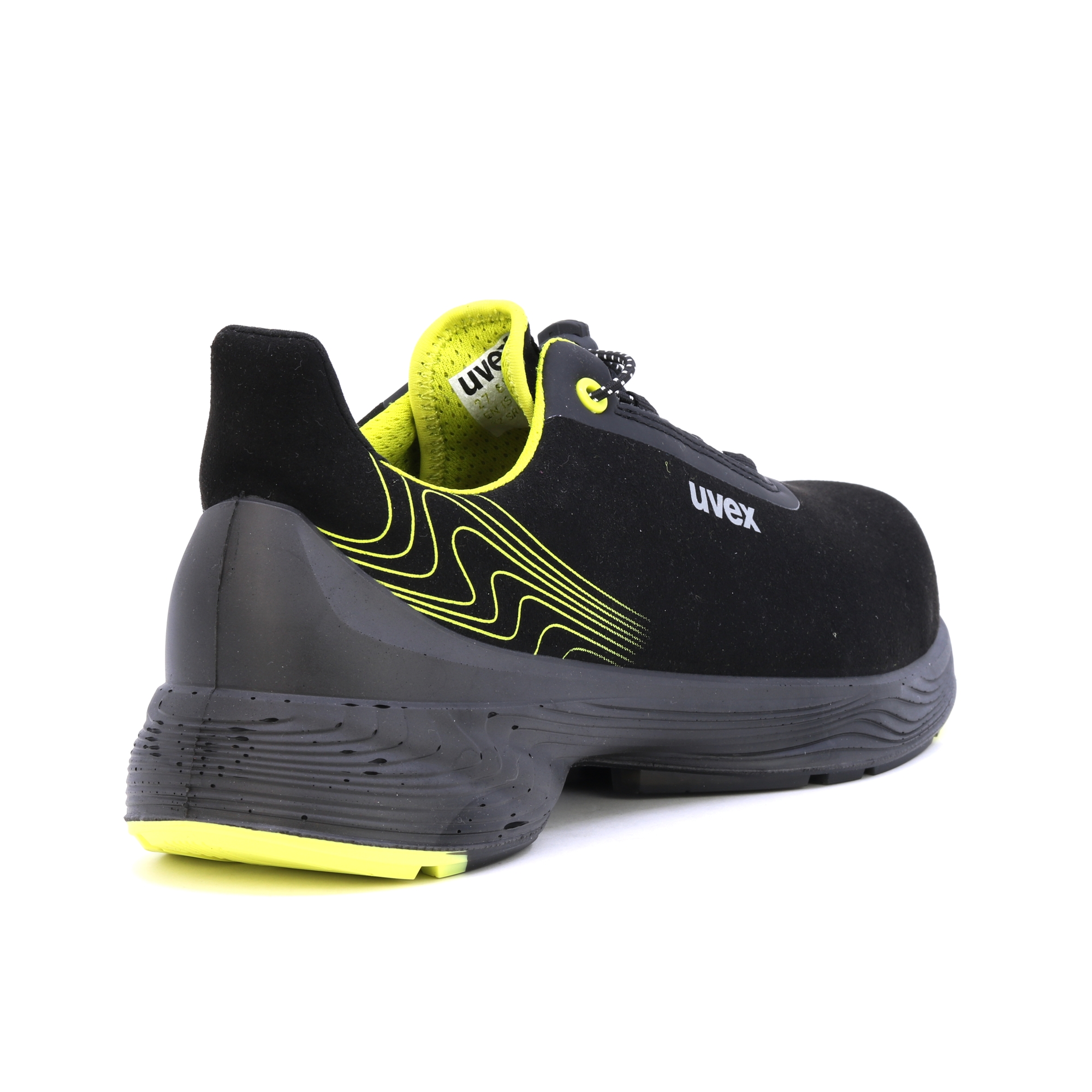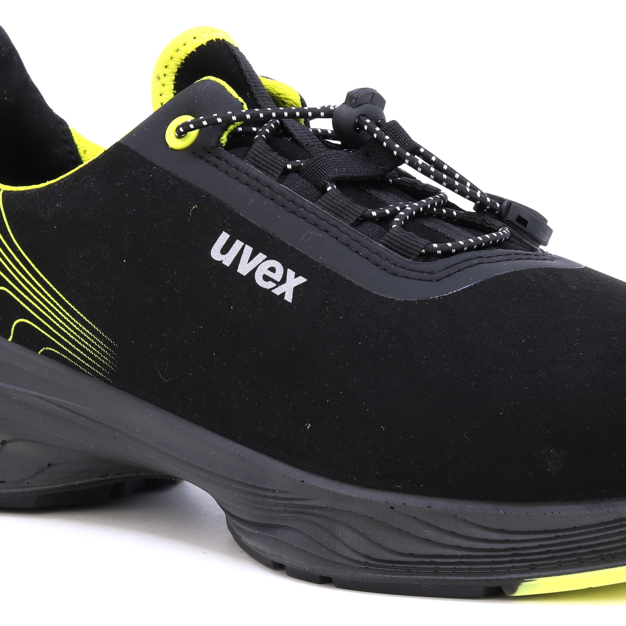 Ergonomicznie ukształtowana podeszwa wykorzystuje najnowszą wiedzę biomechaniczną i składa się z dwuwarstwowego poliuretanu uvex i-PUREnrj o bardzo dobrych właściwościach antypoślizgowych, profil obuwia jest szczególnie odpowiedni do stosowania na podłogach przemysłowych. Wygodne cechy: Wyjątkowy komfort noszenia dzięki nowo opracowanemu szerszemu kopytowi. Oddychające materiały zoptymalizowane pod kątem dobrego klimatu. Praktycznie bezszwowa konstrukcja zaawansowanej technologicznie cholewki z mikroweluru zapobiega uderzeniom ucisku. Wymienna, komfortowa wkładka antystatyczna z systemem odprowadzania wilgoci i dodatkowym efektem amortyzacji w pięcie i przedniej części stopy. Klasyczne sznurowadła w pakiecie GRATIS
