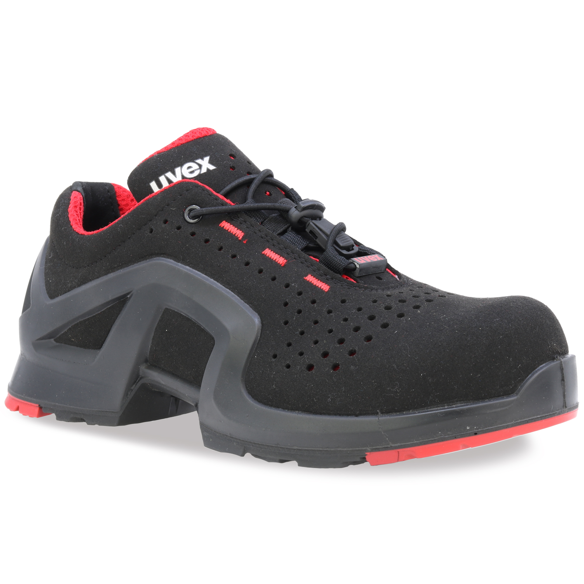 100% niemetalowa czubek ochronny na palce uvex xenova® najnowszej generacji, kompaktowy design, anatomiczny kształt, dobra stabilność boczna, bez przewodności cieplnej, niemagnetyczna. Wyprodukowana za pomocą nowoczesnej technologii formy dla wyjątkowego komfortu noszenia. Optymalny komfort noszenia dzięki technologii uvex climazone. Oddychający, hydrofobowy materiał zewnętrzny wykonany z najwyższej jakości mikrowelurowej tkaniny z perforacją. Optymalna wentylacja dzięki podszewce z siatki. Wykonane z syntetycznych materiałów, odpowiednie dla osób uczulonych na chrom. Indywidualnie regulowany, elastyczny sznurówka z szybkim zapięciem. Prawie bezszwowa konstrukcja górnej części zapobiegająca powstawaniu punktów ucisku. Wyjmowana, wygodna wkładka, antystatyczna, z systemem odprowadzania wilgoci i dodatkowym amortyzacją pięty i palców. Miękko wyścielany brzeg i język. Specjalna podeszwa poliuretanowa z podwójną gęstością, doskonałym amortyzacją i bardzo dobrą odpornością na poślizg, bez materiałów uszkadzających powłokę, takich jak silikony, miękkie plastikatory itp. Spełnia wymagania ESD: opór elektrostatyczny <35 megaomów.