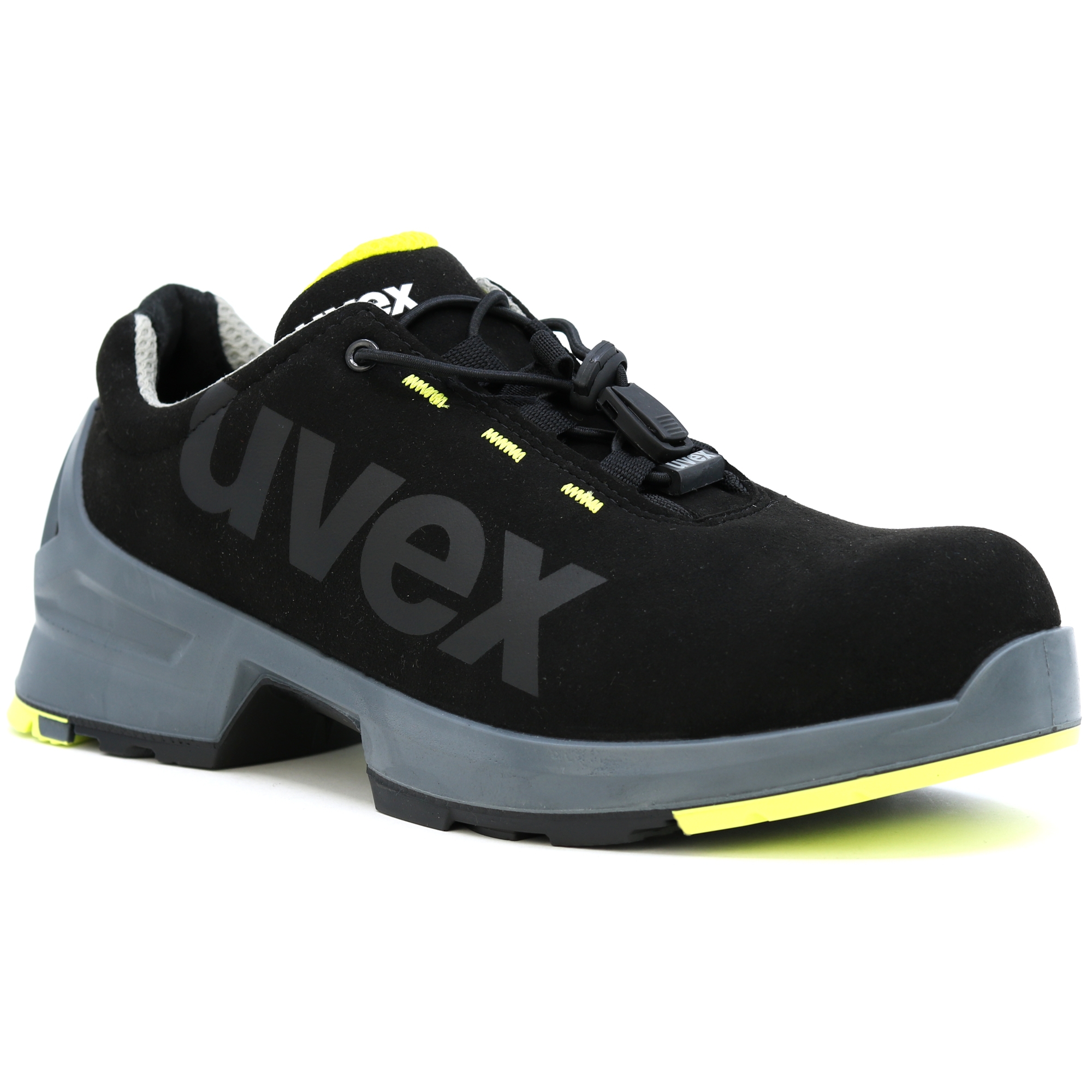 Buty ochronne uvex 1 o klasie bezpieczeństwa S1 i S2 optymalnie chronią i wspomagają naturalny ruch ludzkiego ciała. Obciążenie układu mięśniowo-szkieletowego podczas pracy zostało zredukowane w oparciu o najnowsze badania fizjologiczne i innowacyjną technologię optymalizującą komfort użytkownika. Ergonomiczna, lekka konstrukcja butów ochronnych uvex 1 zapewnia idealną równowagę między ochroną a komfortem. Fason przekonuje klarownymi liniami i minimalizmem. Ogólna charakterystyka. Wyjątkowo lekki, półbut ochronny S2 o szerokim zastosowaniu. Wykonany z syntetycznych materiałów, odpowiedni dla osób uczulonych na chrom. Wszystkie materiały, z których wykonana jest podeszwa nie zawierają silikonów, zmiękczaczy i innych substancji uszkadzających powłoki lakiernicze. Indywidualnie regulowane, elastyczne sznurowadła z systemem szybkiego blokowania, w komplecie zwykłe sznurowadła. Nadaje się do ortopedycznych adapterów i wkładek uvex medicare. Funkcje ochronne: Klasa bezpieczeństwa S2 zgodnie z normą EN ISO 20345:2011 z dodatkowym oznaczeniem bardzo dobrych właściwości antypoślizgowych (SRC). Spełnia wymagania ESD z opornością mniejszą niż 35 megaomów. Podnosek uvex xenova® w 100% bez zawartości metalu & kompaktowa budowa, anatomiczny kształt, dobra stabilność boku, brak przewodnictwa cieplnego. Ergonomiczna, podeszwa z dwuwarstwowego poliuretanu o bardzo dobrej odporności na poślizg. Komfort użytkowania: Wyjątkowy komfort noszenia, do którego nowo zaprojektowane kopyto szewskie przyczynia się w równym stopniu, jak utrzymujące optymalny mikroklimat w bucie oddychające materiały. Wyeliminowania punktów ucisku dzięki prawie bezszwowej budowie z zastosowaniem zaawansowanego mikroweluru. Wymienialna komfortowa wkładka antystatyczna z systemem kontroli wilgoci oraz dodatkową amortyzacją na pięcie i z przodu stopy. Miękki wyściełany język chroniący przed pyłem i kołnierz.